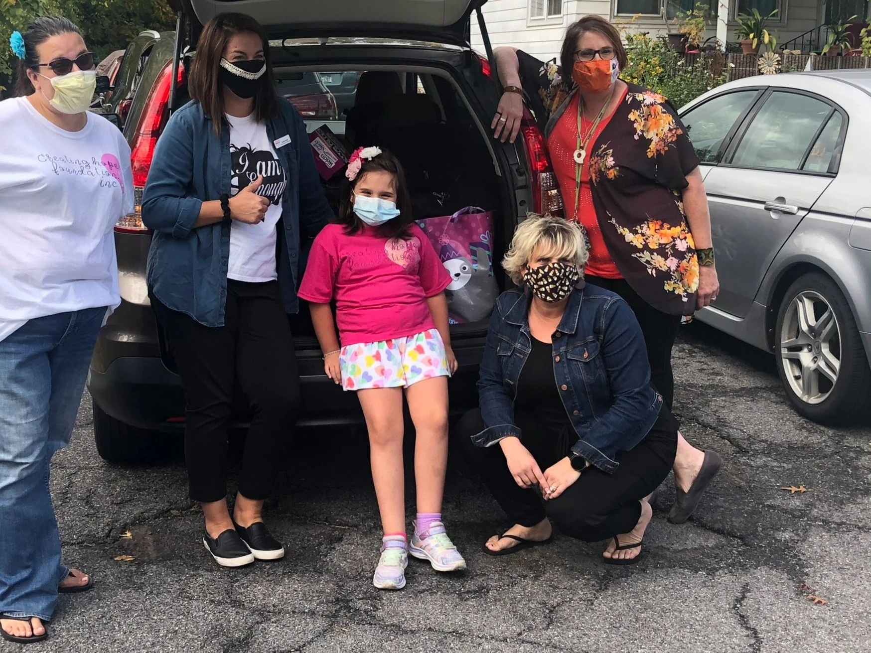Sofia and her mom collect the donations during the drive by birthday surprise, and pass out cake pops to all!